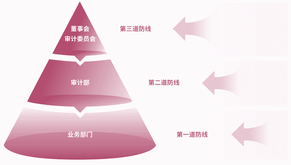 为有效防范贿赂与贪污等商业道德风险,,,,公司建立了由“董事会审计委员会、、审计部、、、业务部门”组成的三道防线,,全面落实公司商业道德合规工作,,,并确保《商业道德行为准则》的有效执行。。。。公司审计部在董事会审计委员会的指导下定期评估、、审查公司的合规运营情况及准则的履行情况,,,并对公司及所有子公司开展商业道德行为审计。。。公司保证商业道德行为准则审计工作每三年覆盖公司及其所有控股子公司的全部业务范围。。。