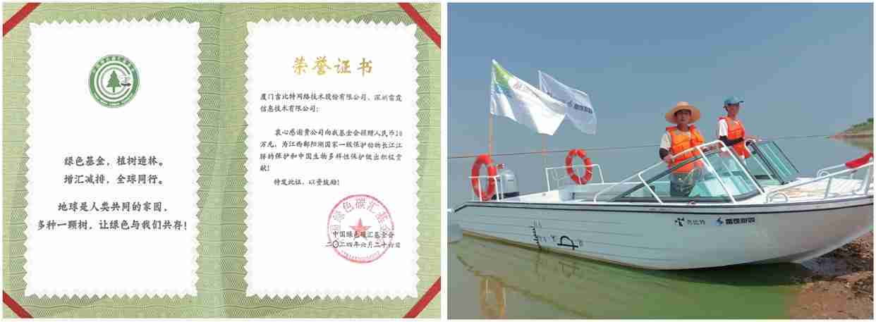 2024年6月,,公司携手中国绿色碳汇基金会,,,,开展“保卫江豚”公益活动,,向基金会捐赠人民币20万元用于采购全新巡逻艇,,,,以支持鄱阳湖长江江豚保护工作。。截至2024年底,,,,公司捐赠的资金与巡逻艇已经有效协助巡护队对鄱阳湖1,667头江豚开展保护行动。。